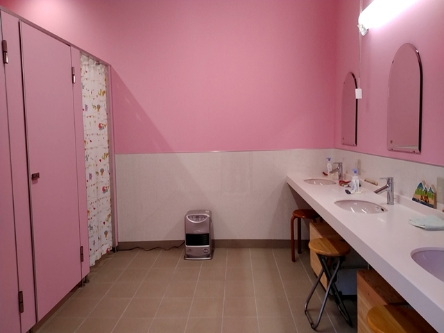 土足厳禁(スリッパ履き替え)暖房付きの快適なトイレ棟です。女性の方にもとても好評です。